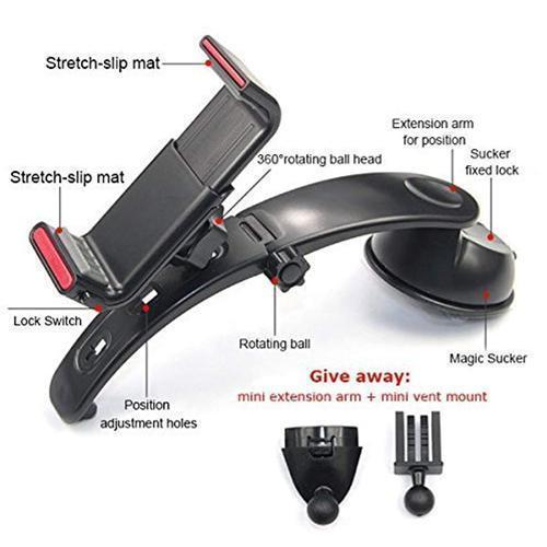 • 360 Rotation: The 360 degree rotatable phone holder for car lets you find the perfect angle to view your Smartphone at a quick glance.