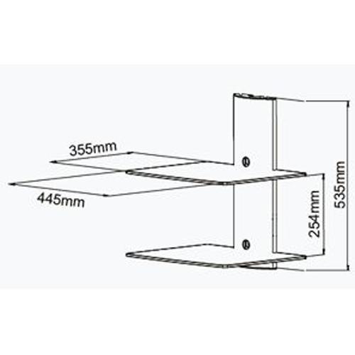 2 shelves Wall Mount in black tempered glass and black mount XL