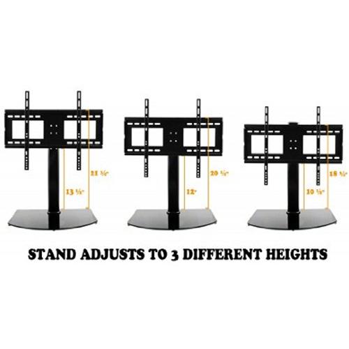 • 3 steps adjustable height of the TV (Highest fixation holes in the back of your TV) : 680mm / 700mm / 720mm (26 3/4" or 27 1/2" or 28 3/8")