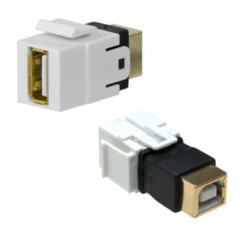 Keystone connector USB 2.0 coupler Female Type A to Female Type B White gold plated.
