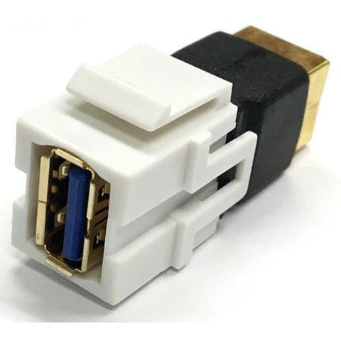 Keystone connector USB 3.0 coupler Female Type B to Female Type A White gold plated.