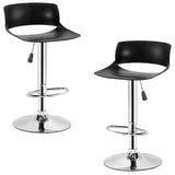 These stylish and contemporary stools are sure to be a hit for your hobbies and large gatherings. The frame is made of sturdy light chrome and features a gas lift mechanism with an adjustable handle to suit personal needs. These adjustable bar stools have a faux leather seat and back as well as a contemporary block-shaped design with a clean, refined and elegant shape that will stand the test of time. It has a solid back and support footrest for added comfort. At the bottom of these stools are footrests, designed to keep sore and tired feet off the ground for a restful experience. This contemporary bar stool offers a swivel action and adapts to a counter and a dining table.