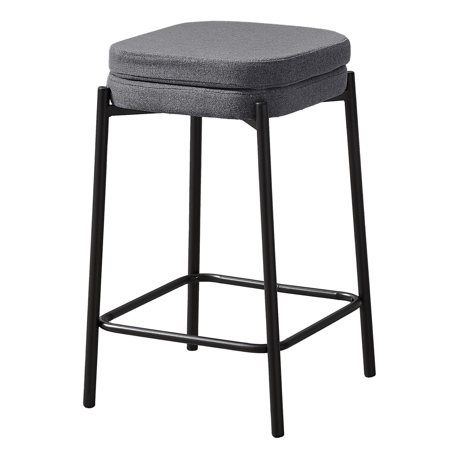 Bring a touch of sophistication to your kitchen or entertainment space with this set of 2 Monarch Specialties Bar Stools. These contemporary backless stools are upholstered in a luxurious, easy-care grey fabric, featuring a thickly padded seat for optimal comfort. Their sturdy construction with slim black metal legs and a built-in footrest ensures not only durability, but also maximum support while you relax. Easy to assemble with illustrated instructions and included parts, these modern stools are a perfect fit for any home. For added functionality, they are backed by a 2-year limited warranty against defects, giving you peace of mind about the quality and longevity of your investment. Pair these stools with a matching Countertop Dining Table (sold separately) to create a modern and seamless dining space.