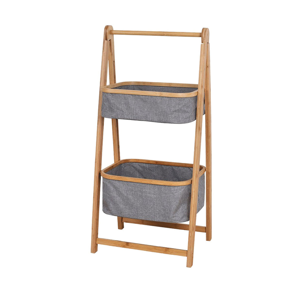 Jessar - 2 Tier Laundry Basket, Bamboo Frame, GreyItem: 76-7-98081