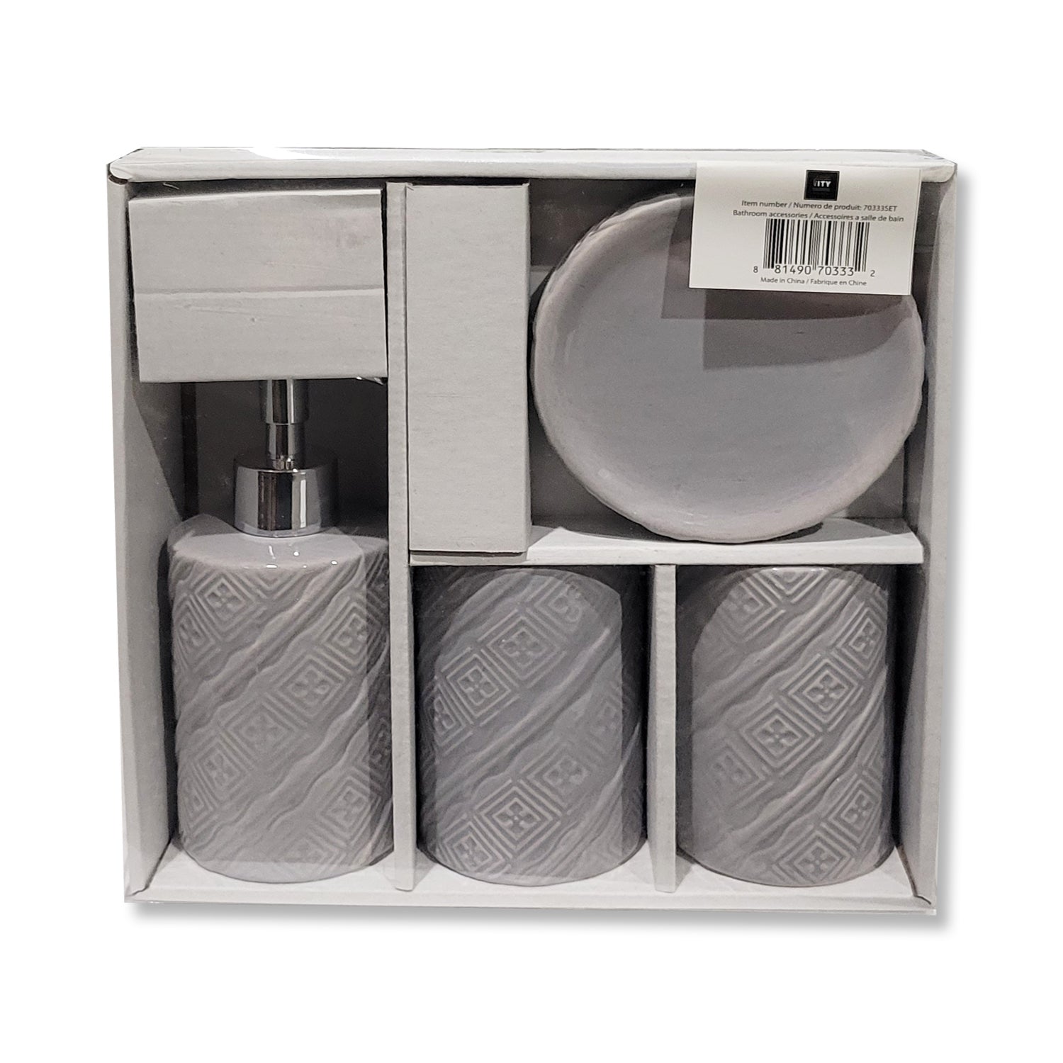 ITY International - Set of 4 Pieces of Bathroom Accessories, Made of Ceramic, GreyItem: 64-70333SET