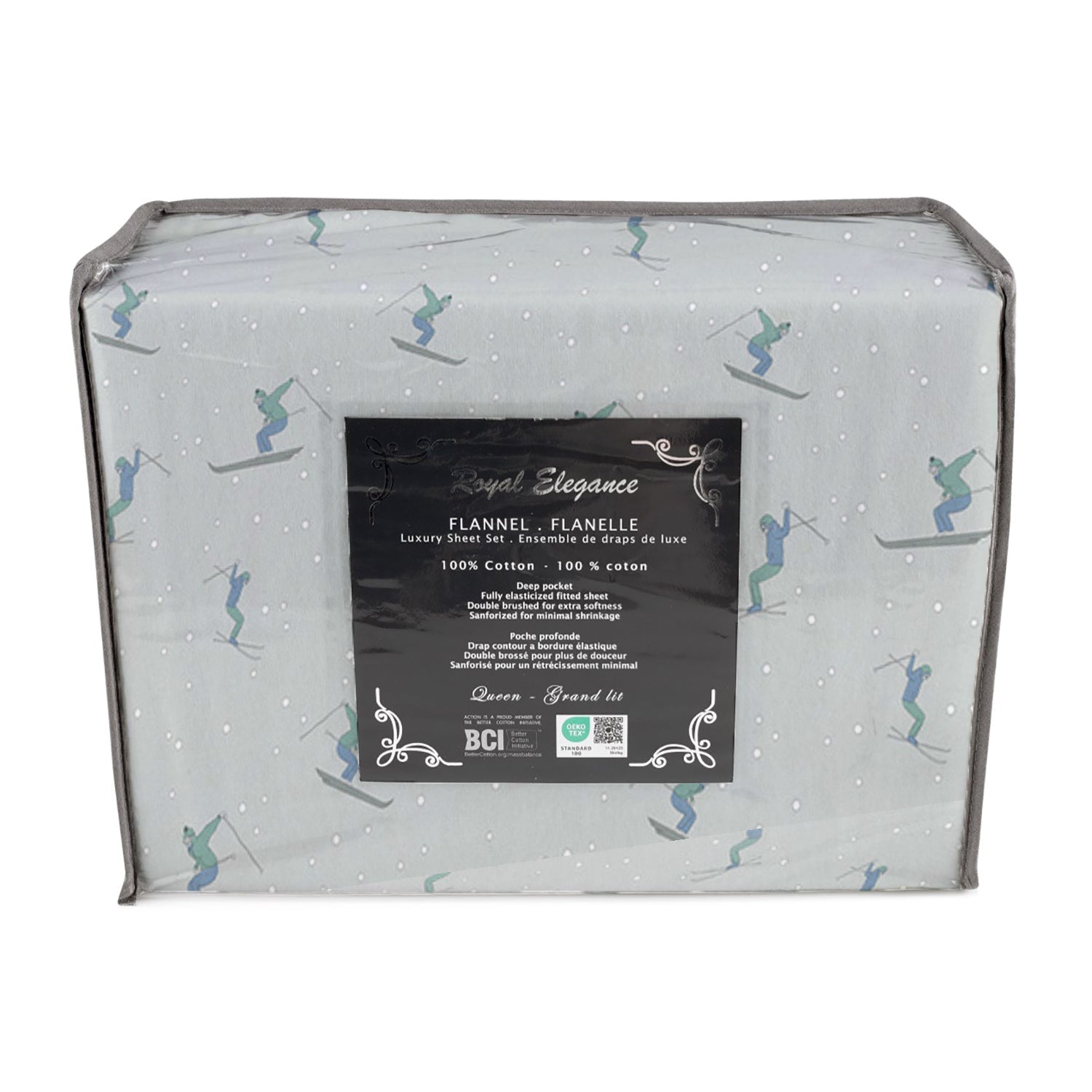 Cotton House - Flannel Sheet Set, 100% Cotton, Skier Design (4 Sizes Available)Item: 57-SSFLPT-ALPINETHRILLS