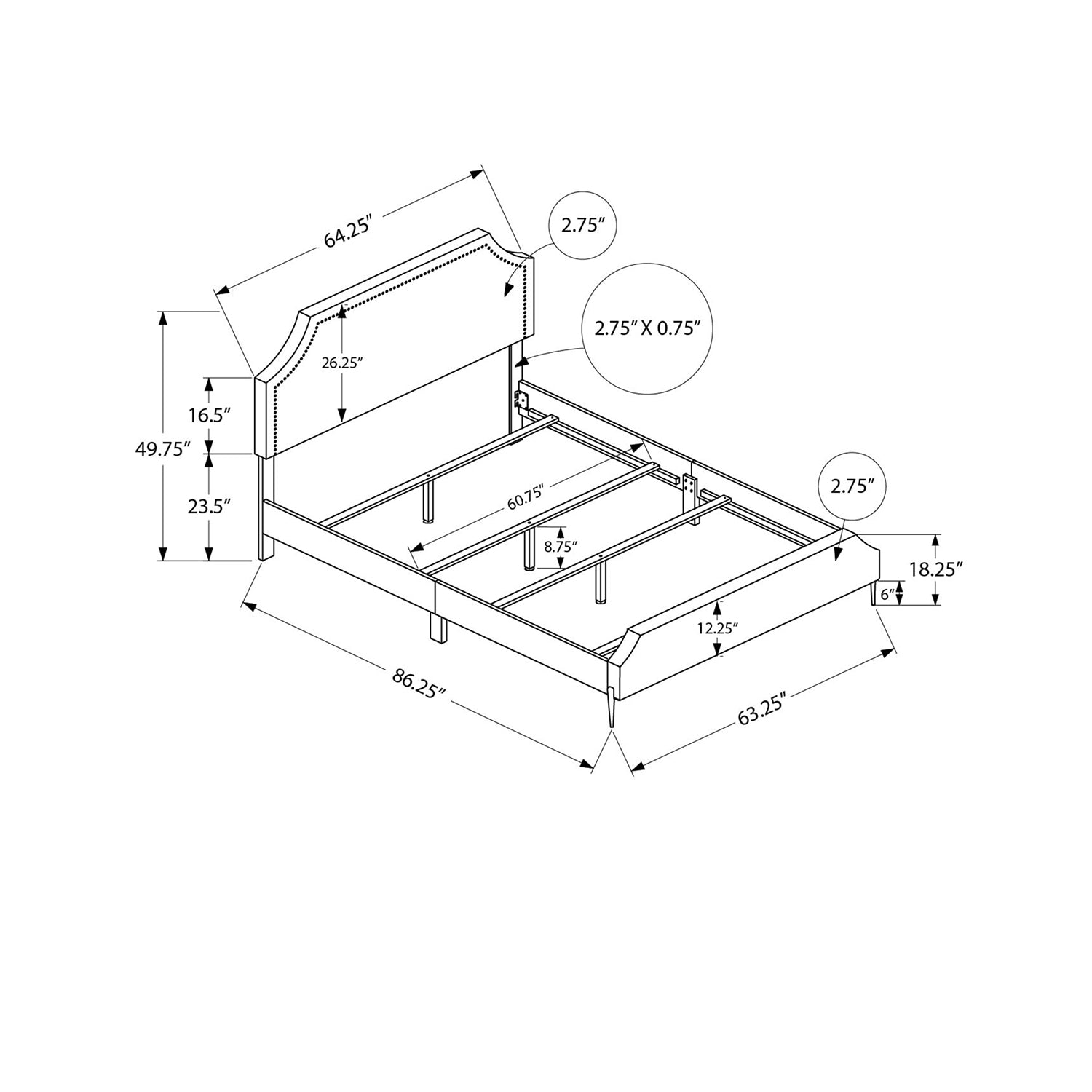 Elevate the elegance of your bedroom with this contemporary Monarch Specialties bed. Its beige linen upholstery, foam padding and chrome nail trim gracefully highlight the arched headboard. The rear and center legs are covered in gray linen for discretion, while the chrome-plated metal front legs add a touch of refinement. A standard queen-size box spring and mattress are required (not included). Assembly is easy thanks to the included instructions, hidden in the zippered compartment at the back of the headboard.