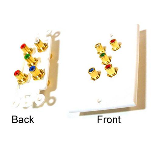Component + Audio Wall Plate White (5x RCA couplers female to female gold plated). Hardware included. Decora plate included.