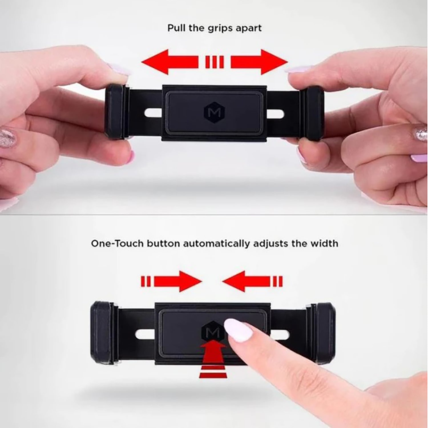 - Single-button grip allows you to adjust the width of the grip with the press of a button, so your phone can slide in smoothly, hassle-free.