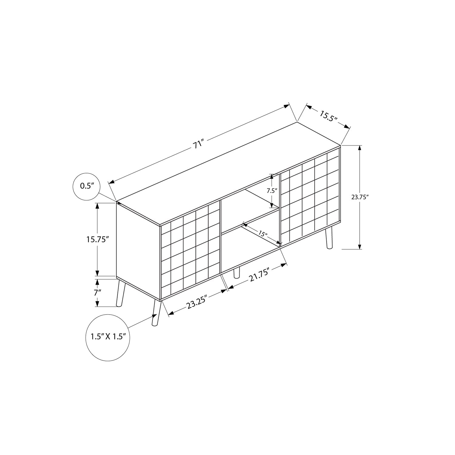 - Convenient Dimensions: Measures 71 in. W x 15.5 in. D x 23.75 in. H with a maximum weight capacity of 75 lbs.
