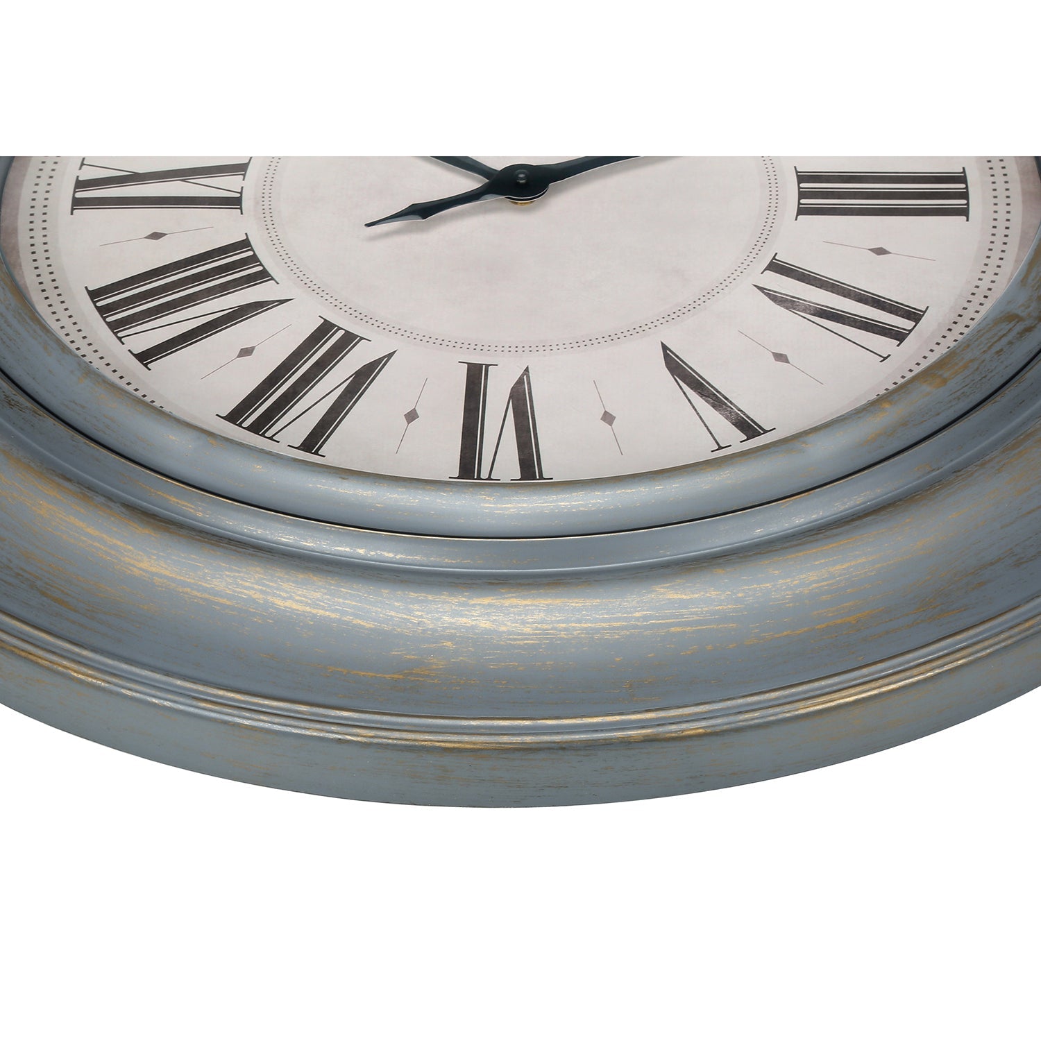 Add a touch of timeless elegance to your home decor with the Monarch Specialties 30-inch Round Wall Clock. Designed in antique blue with subtle brushed gold accents, this oversized transitional clock instantly transforms your space into a sophisticated retreat. Easy-to-read Roman numerals on a clear glass surface ensure easy readability, even from a distance. Featuring a silent and precise quartz movement, this clock creates a peaceful ambiance while ensuring impeccable timekeeping. Crafted with a sturdy plastic frame, it requires no assembly: simply insert one AA battery (not included), hang it on the wall, and admire its distinctive charm.