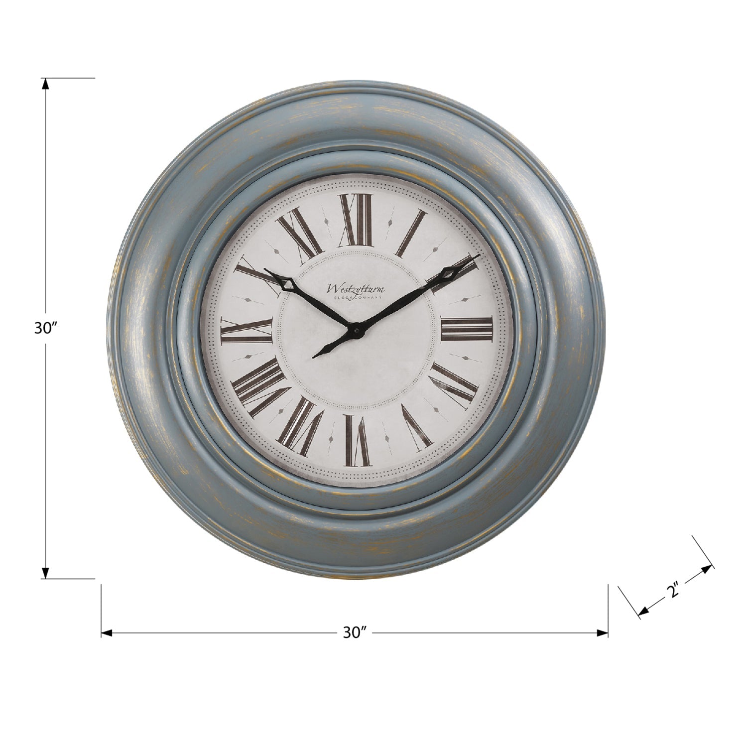 Monarch Specialties I 9028 - Clocks, 30" Round, Large Oversized, Wall Clock, Antique Blue, TransitionalItem: 83-9028