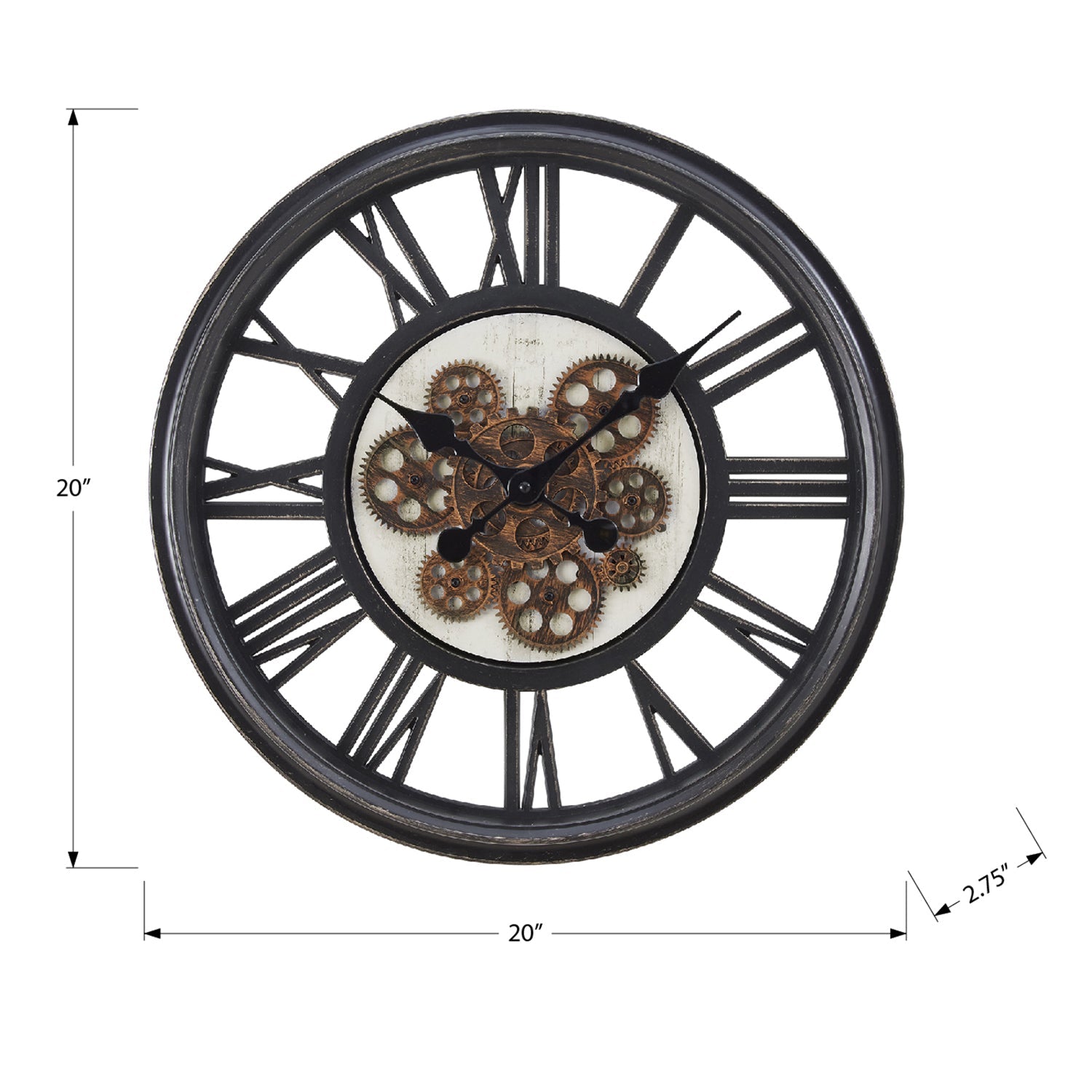 Unique Design: 20-inch round wall clock with moving gear mechanism, ideal for modern and transitional decors.