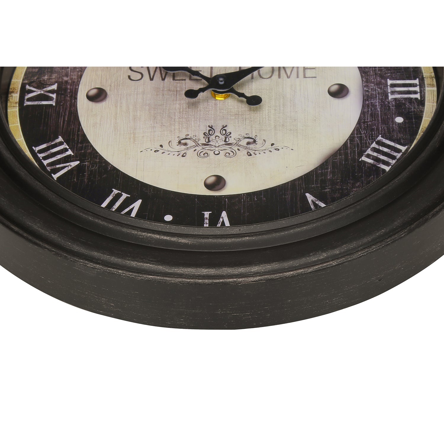 Add timeless elegance to your space with this 16" round wall clock in antique brown, perfect for transitional decors. The classic design of Roman numerals printed on a vintage background is protected by a quality glass surface, framed in a frame Sturdy brown plastic Featuring a quiet and precise quartz movement, this clock ensures reliable timekeeping while maintaining a peaceful atmosphere. No assembly required: simply insert an AA battery (not included) to set up. quickly Ideal for indoor use, it is backed by a 2-year limited warranty, ensuring quality and peace of mind.