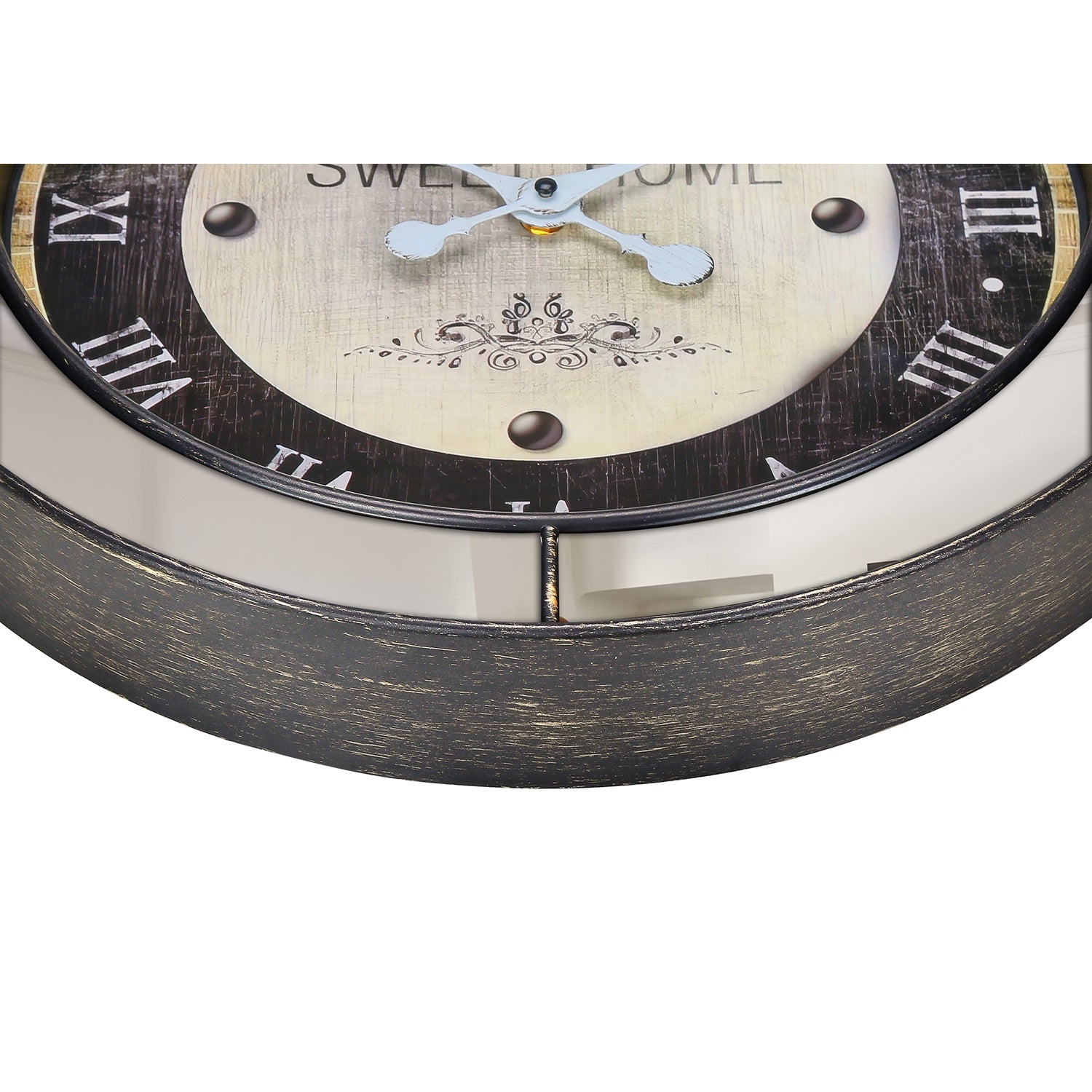 Readable and decorative display: Roman numerals printed on a vintage background, protected under a transparent glass surface for optimal visibility.