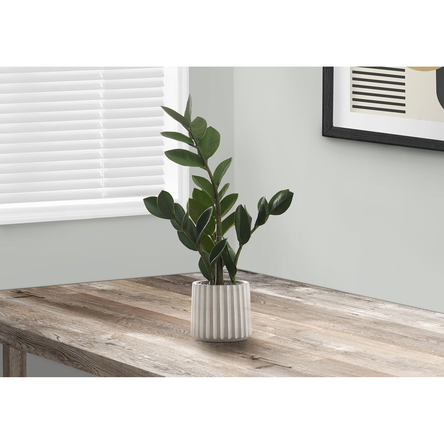 Transform your space with this ultra-realistic artificial plant from Monarch Specialties! Measuring 20 inches tall, this artificial ZZ plant is nestled in a contemporary 5-inch gray cement pot with a grooved texture. Its 32 incredibly realistic leaves are adjustable to your preferences. Made from high-quality, durable materials, this plant adds a touch of realism to any environment, whether at home or in the office. Best of all, this eco-friendly plant requires no watering or maintenance, offering long-lasting, hassle-free elegance. Brighten any room with this attractive green plant, without worrying about lighting conditions or inconvenience.