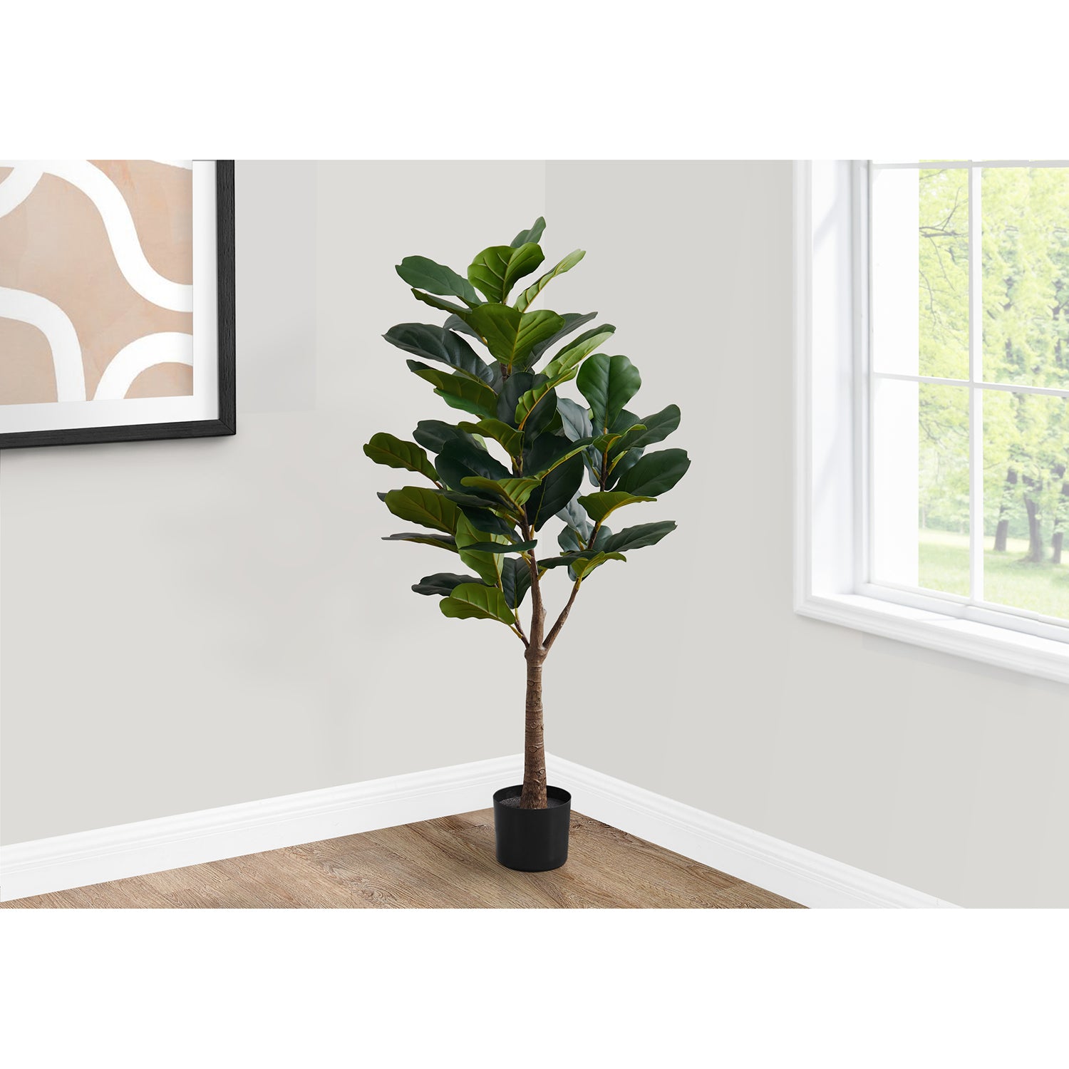 Monarch Specialties I 9515 - Artificial Plant, 47" Tall, Fiddle Tree, Indoor, Faux, Fake, Floor, Greenery, Potted, Real Touch, Decorative, Green Leaves, Black PotItem: 83-9515