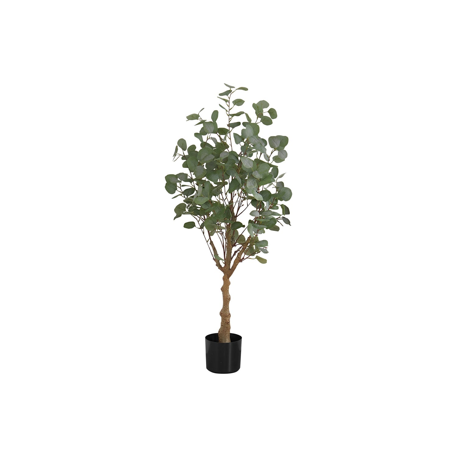Transform your home with the 46-inch artificial eucalyptus tree from Monarch Specialties. Its 264 leaves, crafted from high-quality material, offer a silky green color and adjustable branches for a realistic look. Installed in a 5-inch black pot, this tree is an exceptional decorative accent. Not only is it durable and environmentally friendly, it also eliminates the need for watering. Enjoy the beauty of nature without the hassle of maintenance with this artificial eucalyptus tree that will brighten up your room for a lifetime.