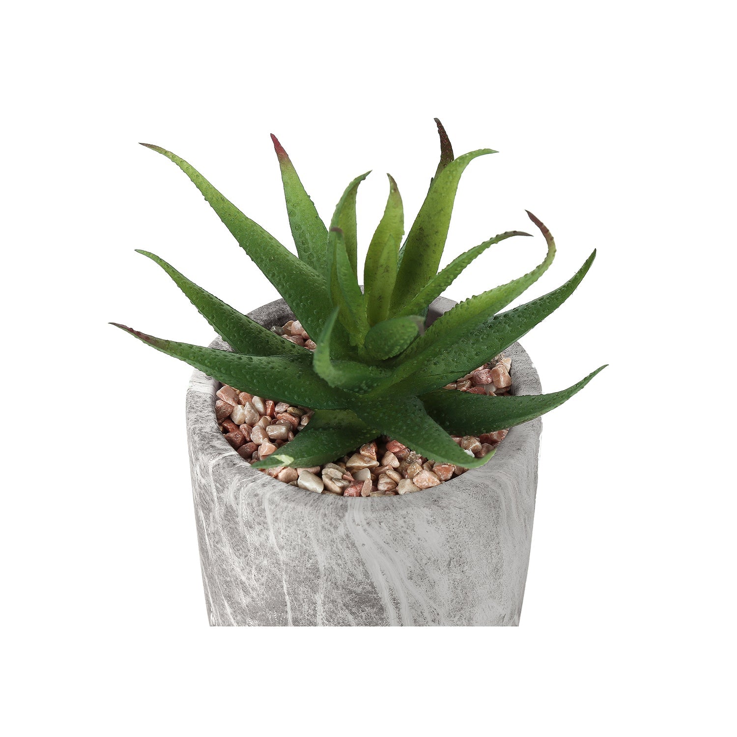 Bring a modern touch to your home with this elegant set of 2 7" artificial succulents. Nestled in 4" cement pots with a gray marble finish, they're topped with gravel for an effortlessly realistic look. These dummy plants require no watering or maintenance, making them ideal for busy people. Their authentic-touch green leaves create a carefree decorative accent. Opt for these high-quality, eco-friendly and long-lasting succulents to bring life to any room, without the hassle of real plants.