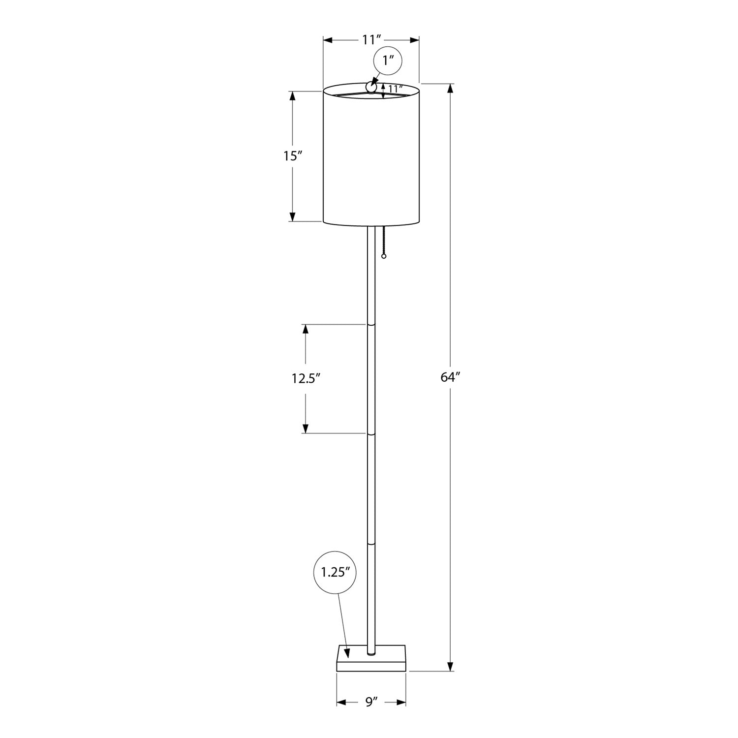 • Product Dimensions: 11 in. L x 11 in. W x 64 in. H; Shade: 11 in. L x 11 in. W x 15 in. H