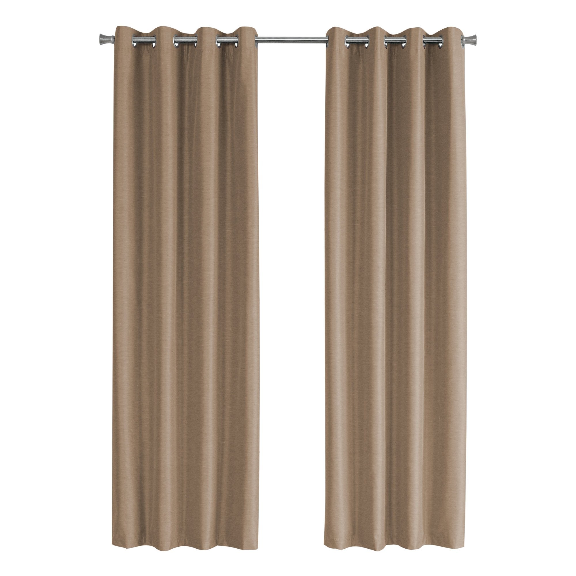 Give your space a luxurious look with this set of two blackout curtain panels in a warm light brown finish. Each 52W x 95"H unlined curtain panel is embedded with solid blackout material blocks out the light when needed