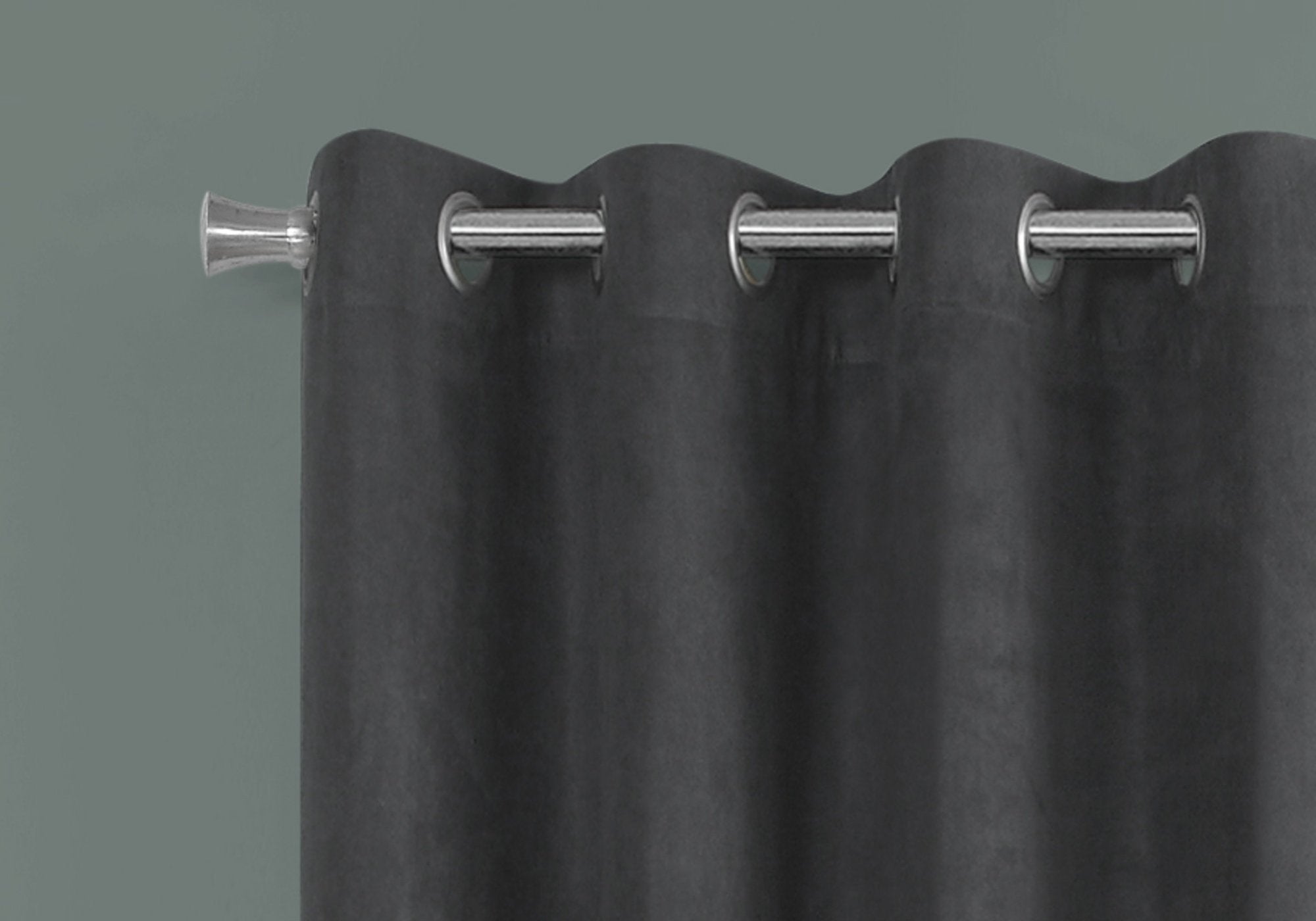 Monarch Specialties I 9803 Curtain Panel, 2pcs Set, 54"w X 84"l, Room Darkening, Grommet, Living Room, Bedroom, Kitchen, Micro Suede, Polyester, Grey, Contemporary, Modern