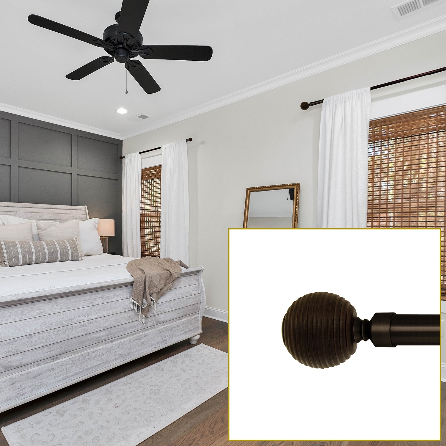 Versailles - Vivendi Ribbed Ball Curtain Rod Set, Adjustable Length, Brown (2 Sizes Available)Item: 112-VN0136-59