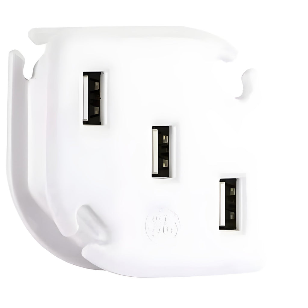 GE - 3-Outlet USB Wall Charger with Integrated Cable Management System, WhiteItem: 98-A-GE33795