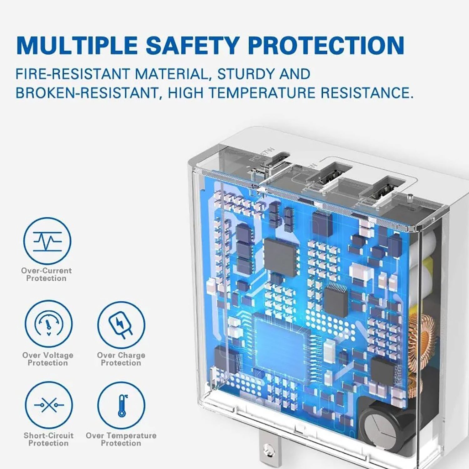65W High Power: Simultaneously charges a USB-C laptop and two smartphones, perfect for all your devices.