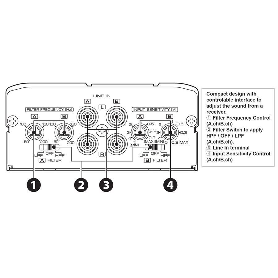 •Compact Class-D amplifier supports louder volume for Car, Marine and Motorsports users with low-noise.