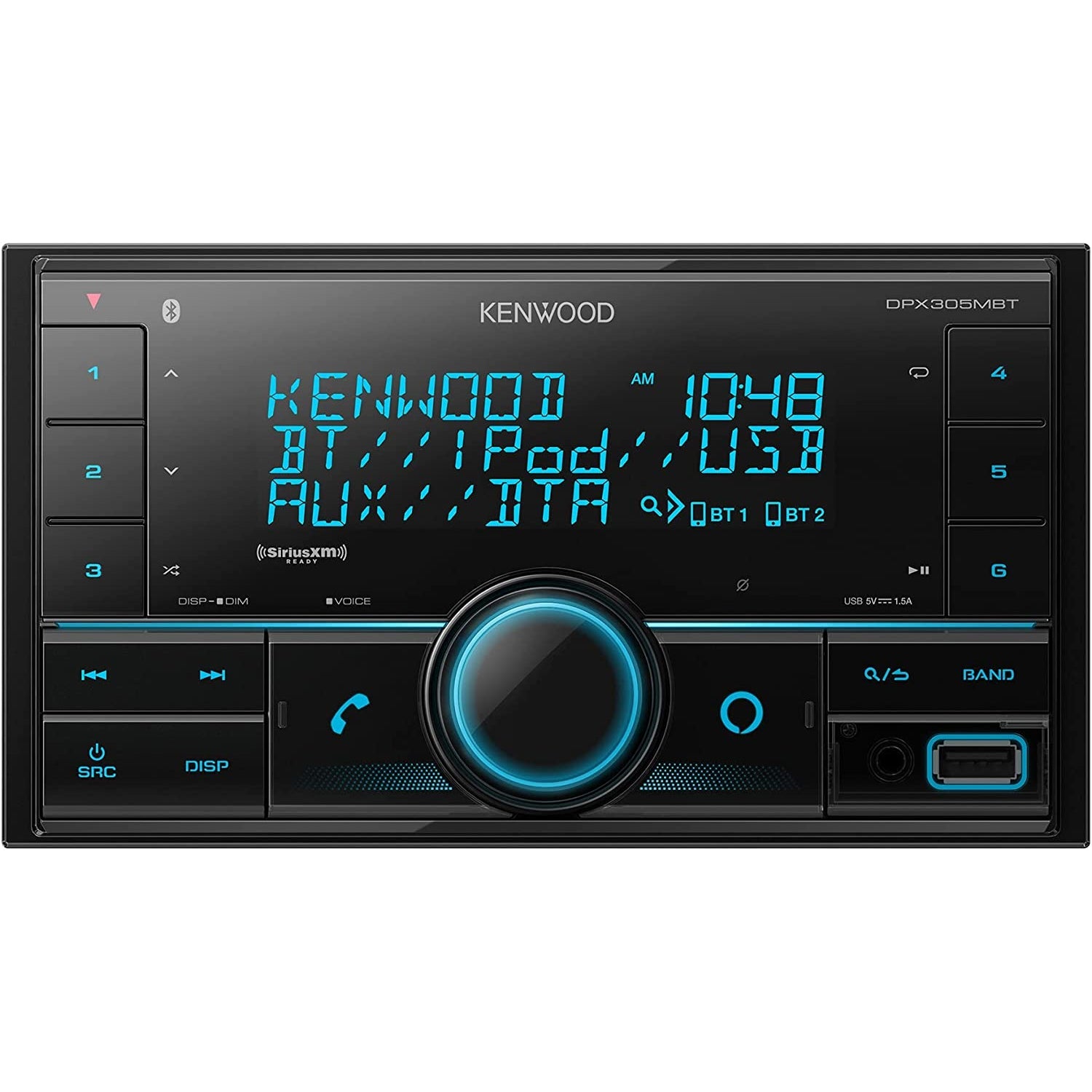 The Kenwood DPX305MBT multimedia receiver features advanced Bluetooth connectivity and is compatible with Amazon Alexa. Control your music and more with Alexa voice control. Listen to your favorite music apps and the music stored on your device with basic audio controls. With KENWOOD Music Mix, you can connect up to 5 Bluetooth devices simultaneously. Enjoy an optimal audio experience with the 13-band equalizer, digital time alignment and driving equalizer. The receiver is also ready for system expansion with RCA outputs. Installation is made easy thanks to the short chassis. Customize lighting with color-changing LEDs. The receiver is also compatible with SiriusXM radio and offers text display in Spanish and French.
