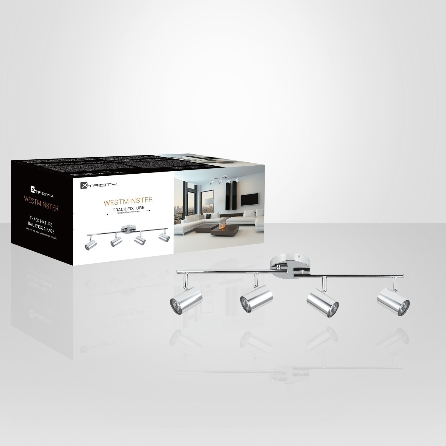 Optimize your interior lighting with the Xtricity 4-Head Ceiling Light from the Westminster Collection. This sleek chrome finished track lighting brings sophisticated modernity to any room. With 4 Culot GU10 bulbs (35W max each, sold separately), this fixture offers versatile and adjustable brightness to create the perfect ambiance. The contemporary design combined with the exceptional quality of the Westminster Collection makes this ceiling light an ideal choice for highlighting your space with style and functionality.
