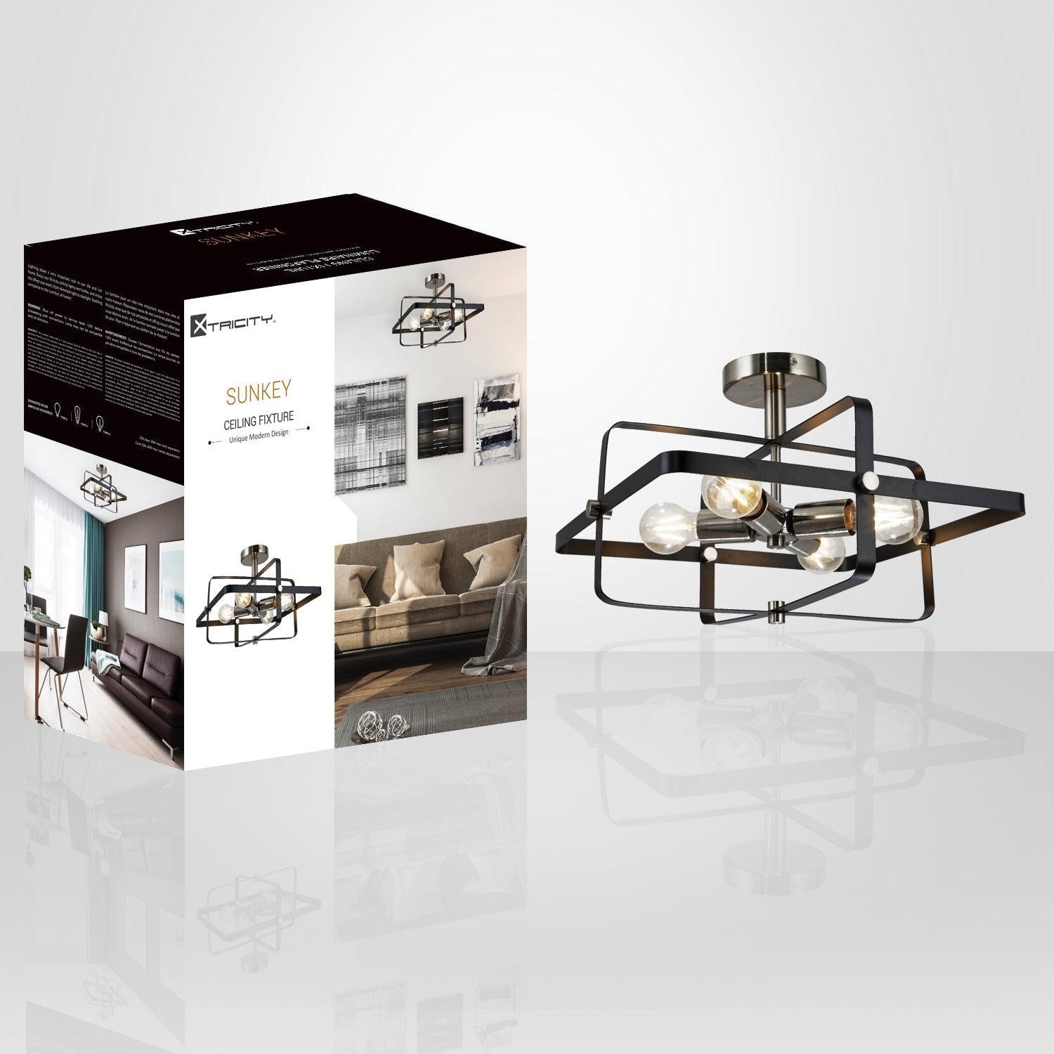Transform your space with the 4-light ceiling light from the Sunkey collection by Xtricity. Its striking design, combining a sleek black finish with silver accents, brings a modern and sophisticated touch to your interior. This decorative ceiling light is equipped with 4 E26 sockets, allowing you to customize the brightness with bulbs up to 40W each (bulbs not included). Operating at a voltage of 120V, this light fixture is easy to install and harmoniously complements your decor. Add a chic ambiance to your room with the Sunkey ceiling light.