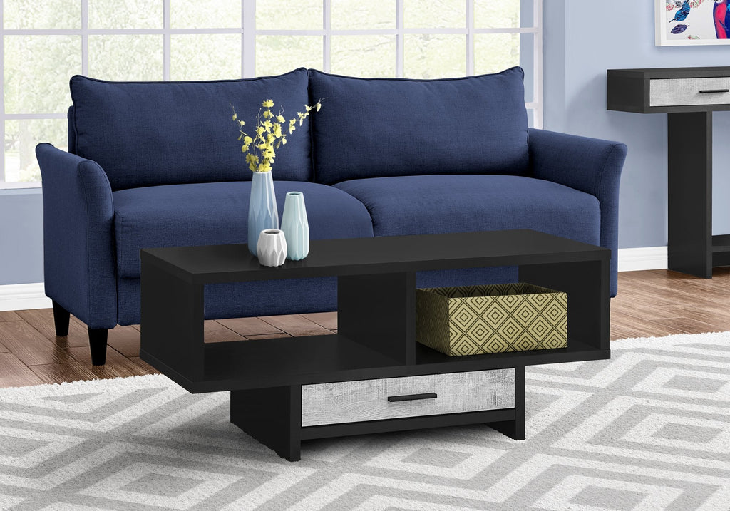 Monarch Specialties I 2810 Coffee Table, Accent, Cocktail, Rectangular, Storage, Living Room, 42" L, Drawer, Laminate, Black, Grey, Contemporary, ModernItem: 83-2810