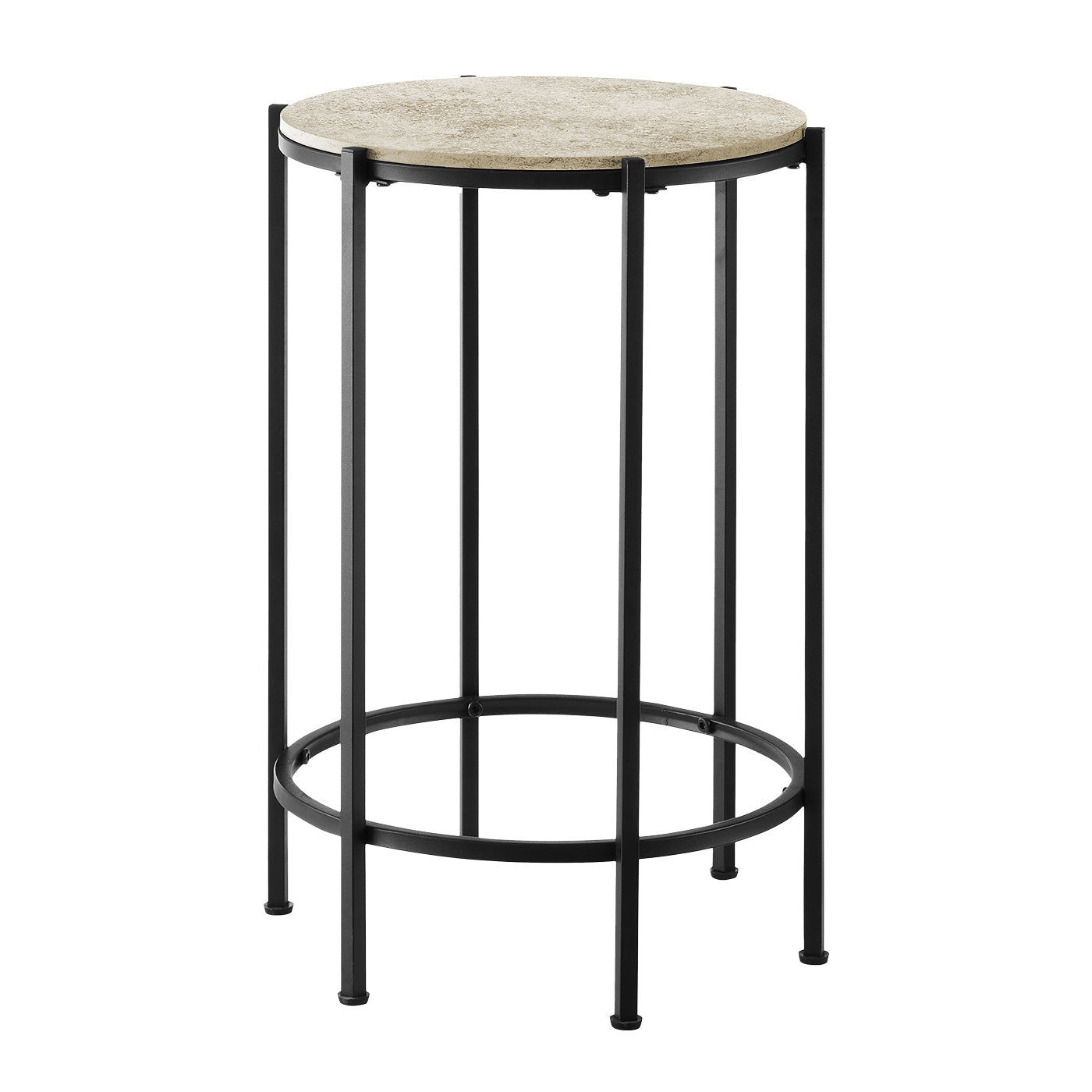 Add a touch of modern style and functionality to your space with this Monarch Specialties accent table. Designed with a round cream stone laminate top and sturdy black metal legs, this compact and sleek table is perfect for the living room, bedroom or any space that needs a practical and aesthetic solution. With ample space to accommodate a lamp, books or decorative items, this table combines durability with easy maintenance. Easy to assemble with the included hardware, it ensures years of use with its solid construction and a 5-year limited warranty.