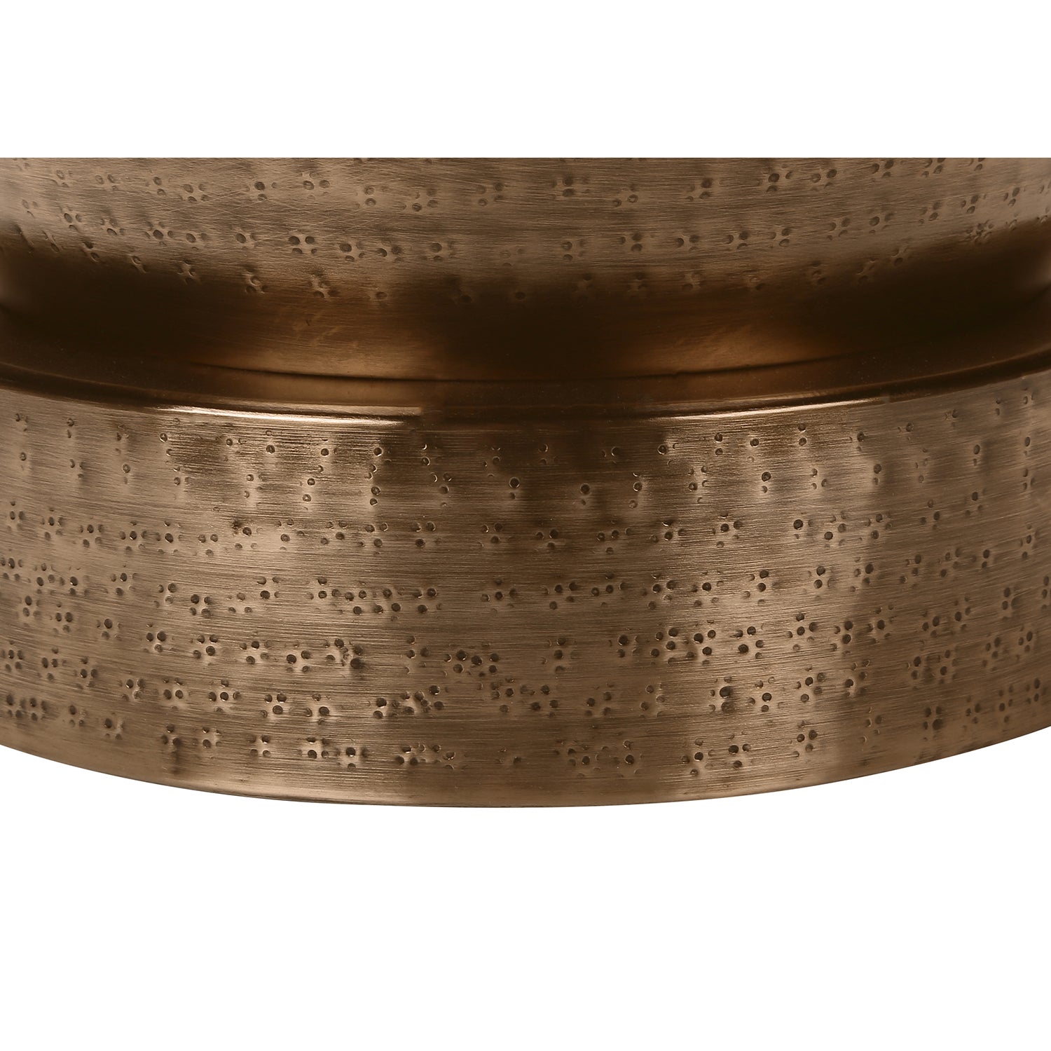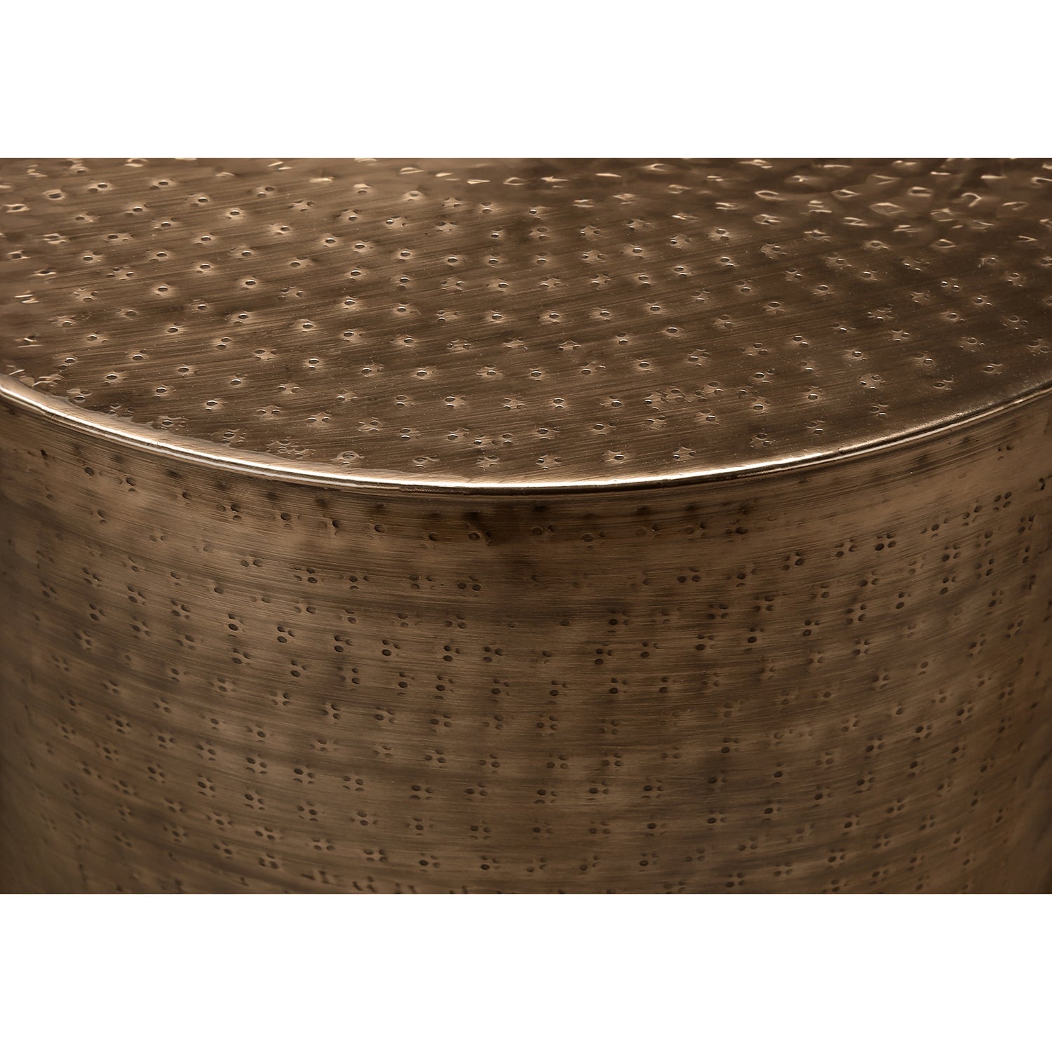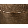 Let yourself be seduced by this drum-shaped side table, 22 inches high, with its unique copper charm. Its hammered metal finish gives it a classic boho-chic style. Handcrafted from ferrous metal, this versatile table is perfect as a side table in the living room or as a nightstand in the bedroom. It fits harmoniously into all decors, from contemporary to modern. It requires minor assembly and is backed by a 5-year limited warranty. For indoor use only.