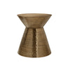 - This 22-inch high accent table, handcrafted with a hammered design on all sides, brings a bold, glamorous presence to a room with a sophisticated copper metal finish in a modern hourglass shape.