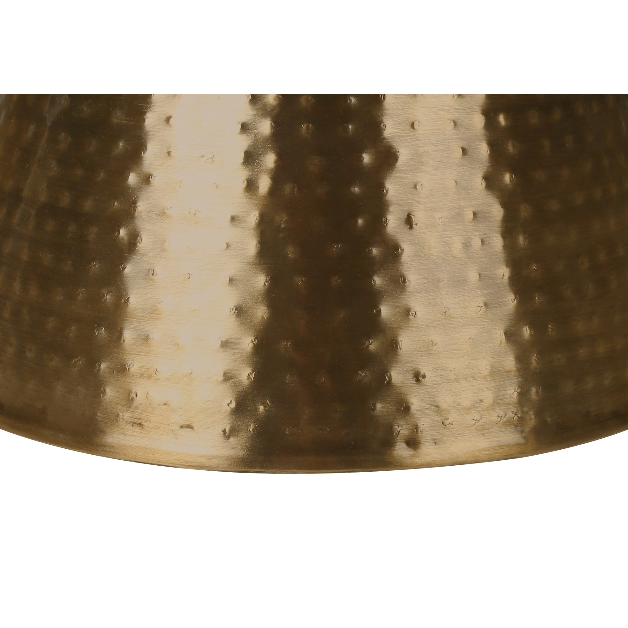 Revitalize your space with the Monarch Specialties Copper Metal Side Table. Handcrafted from ferrous metal, this 22-inch drum table features an angular hourglass shape, contemporary design, and hammered texture on all sides. It is versatile, whether as a side table, end table in the living room, or as a nightstand for a sophisticated touch in the bedroom. Its ample upper surface is ideal for a lamp, a decorative object or a drink. Sturdy and durable, this accent table comes with a 5-year limited warranty against manufacturer defects. Minor assembly is required, and it is intended for indoor use only.