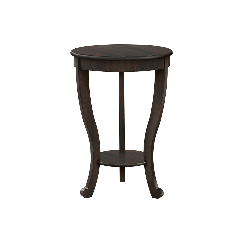 - This classic and fashionable round side table, finished in dark walnut brown veneer, adds a touch of elegance to any room