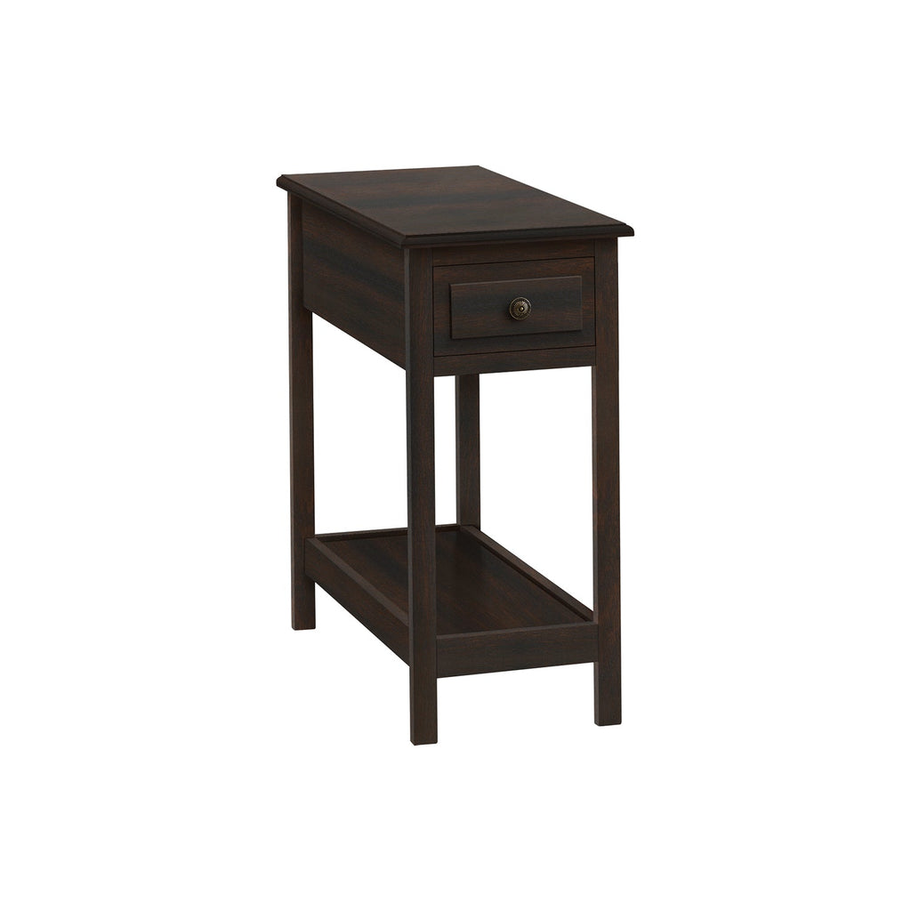 • It features a handy storage drawer with a sleek bronze metal knob to keep small essentials within easy reach, and a lower shelf for added space.