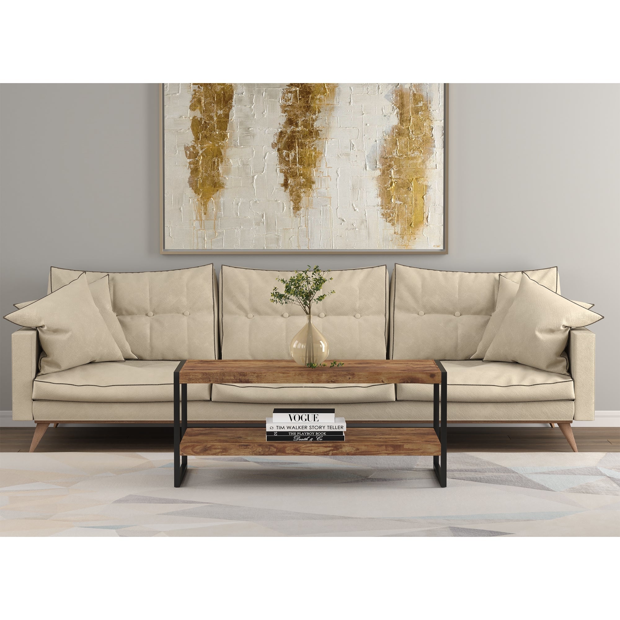 This coffee table brings a contemporary, minimalistic and industrial feel to your living room / den. It has a wrought iron frame with an open rectangular silhouette and a bottom shelf. The table offers plenty of room for your decorative ideas while keeping everyhting sleek and organized! Available Color: - Brown Reclaimed Wood / Black Metal Available Size: - Coffee Table (47.25"L x 23.25"W x 20"H) Features: - Contemporary design. - Spacious top and sturdy sturcture. - Large bottom shelf. - Perfect addition to your living room area.