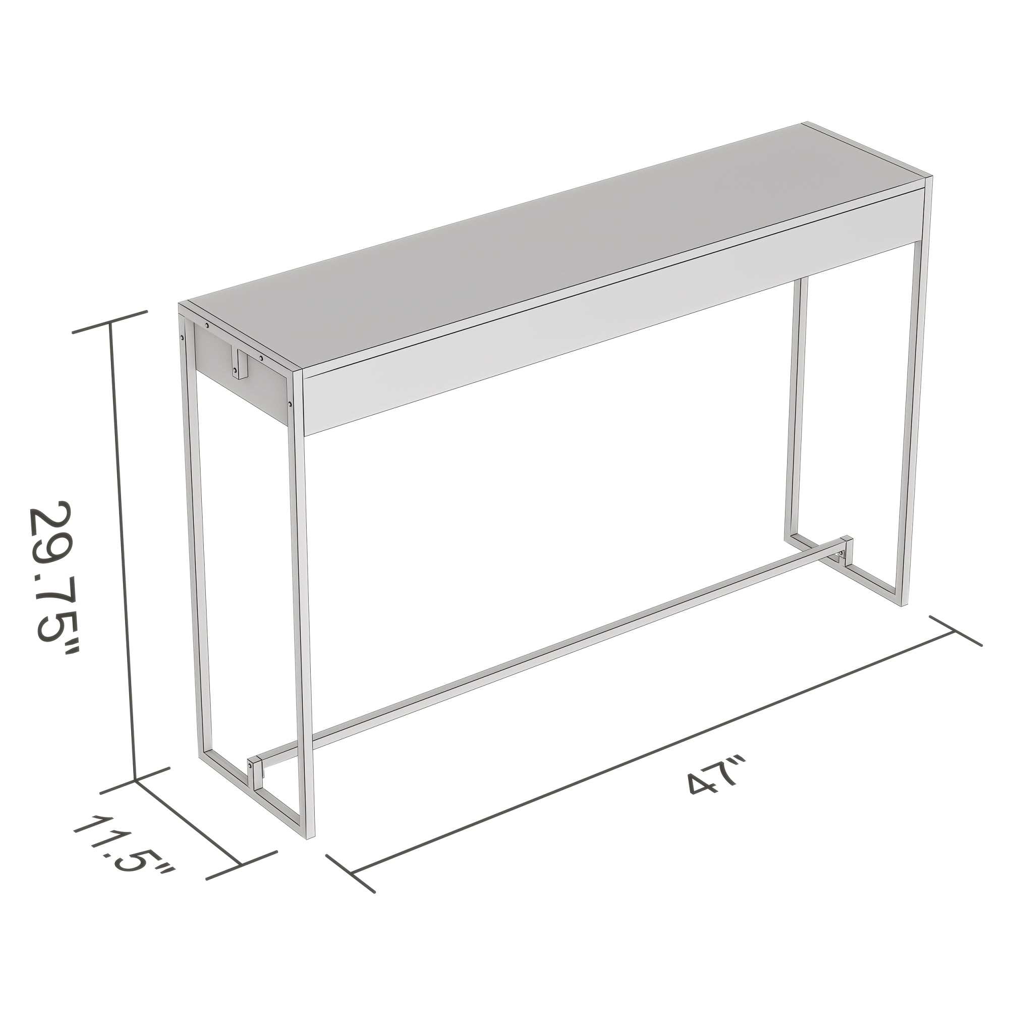 This console table brings a contemporary, minimalistic and industrial feel to your home. The narrow design has a wrought iron frame with a lower support bar that offers style and stability. The table offers the room you need for your decorative expressions while keeping everyhting sleek and organized! Available Color: - Dark Taupe Available Sizes: -Console Table (46.85" L x 11.4" W x 29.75" H) Features: - Modern and minimalistic design, sturdy structure. - One large area surface. - Perfect addition to your entryway / living room.