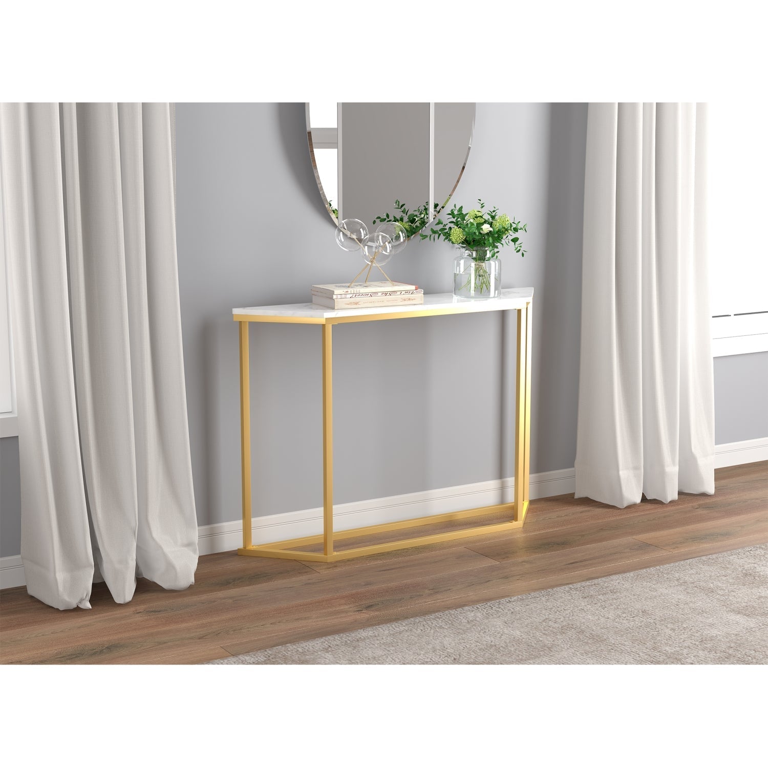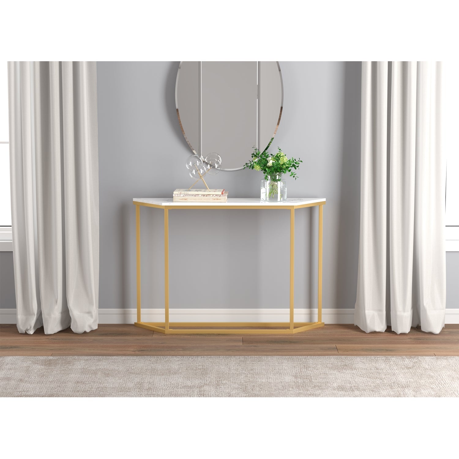 Safdie & Co Entryway Table Console Table Sofa Couch Table Accent Table - 44" Long Marble Look with Gold Metal for Living RoomItem: 120-81148-Z-72