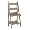 This multifunctional contemporary style computer desk / bookcase offers a compact work space that is ideal for apartments, condos, or small homes. With clean lines in a warm dark taupe wood-look finish, this desk will blend easily with your home decor. The top ladder style shelves can be used to display pictures and decorative pieces, while the closed storage area can be dropped down into a desk, with an additional bottom shelf for books or accessories. Add this convenient and functional workstation in your home where ample storage options, excellent functional features, and sophisticated style come together.