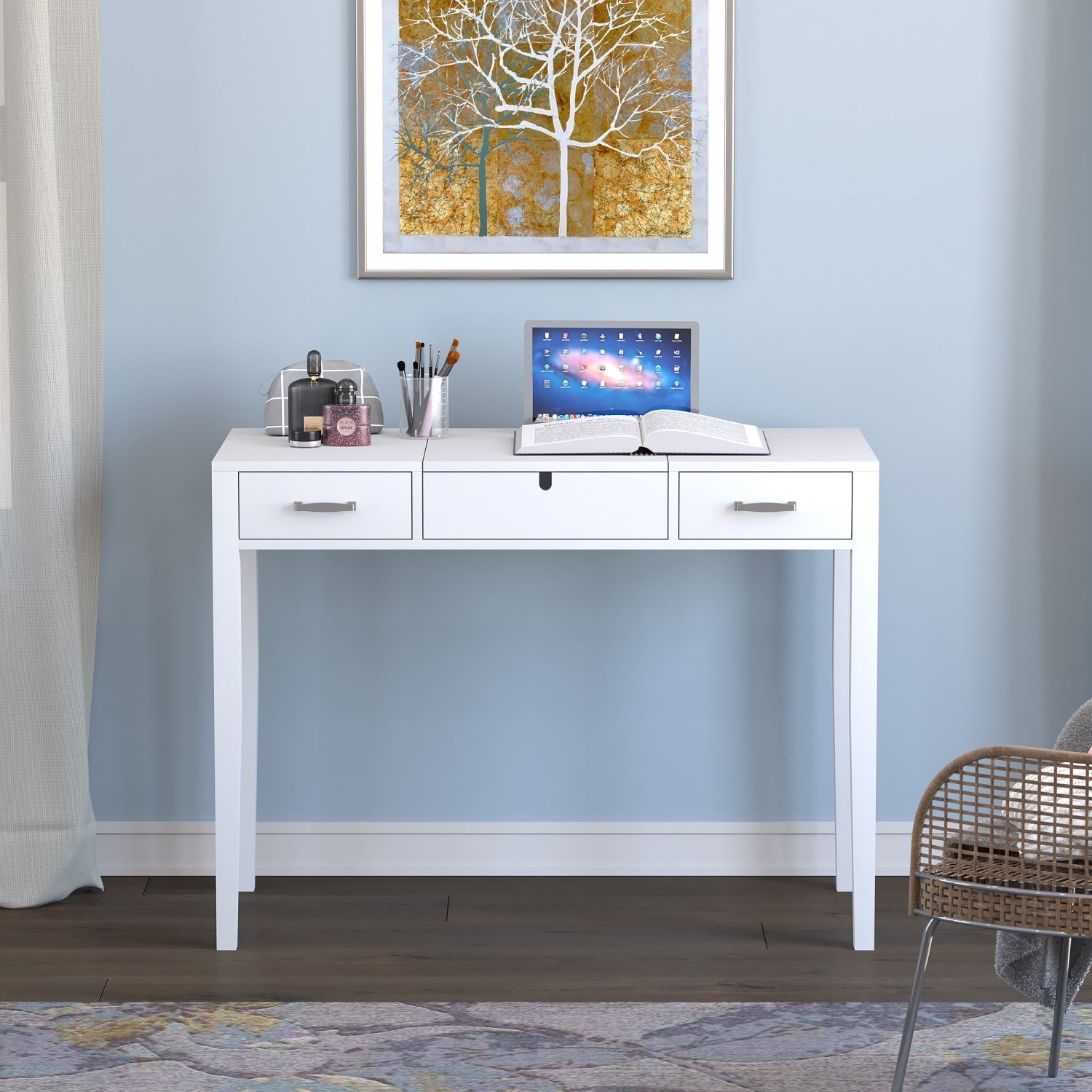 Safdie & Co Vanity Table Multifunctional - 40" Long White with 2 Drawers and 1 Foldable Mirror