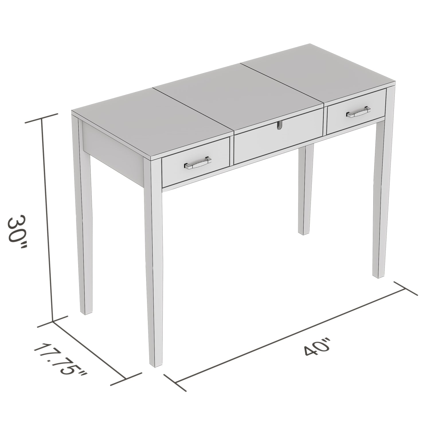• Specifications: This vanity features two spacious drawers for out-of-sight storage and organization. In addition, the foldable mirror allows it to double as a computer desk or writing table!