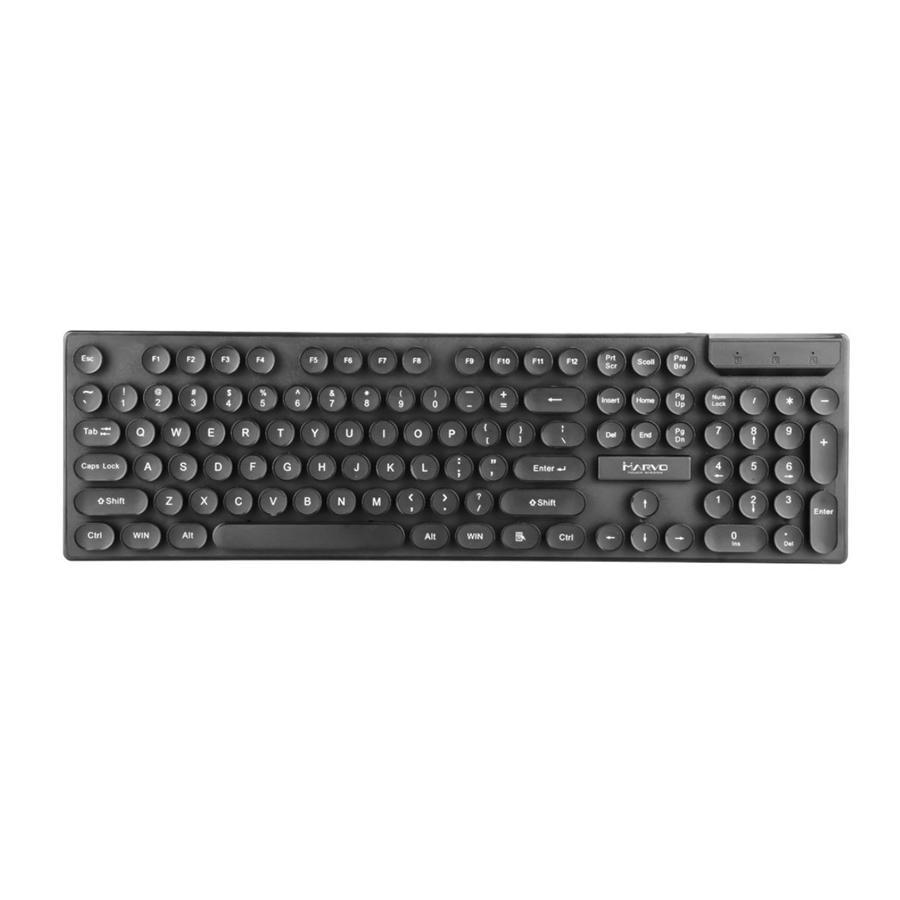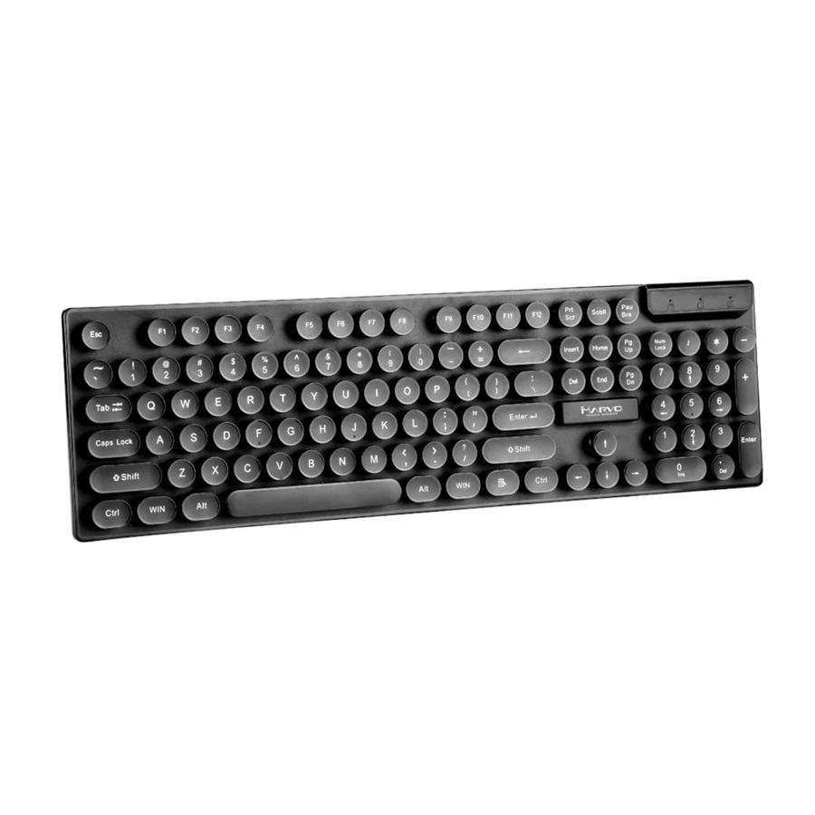 The Marvo set includes a keyboard and mouse with 2.4G wireless. The membrane keyboard has a capacity of 10 million clicks and 104 keys. The set also includes a 2.4G wireless optical mouse, 3 buttons, DPI 1200 switch, and switching capability up to 3 million clicks.