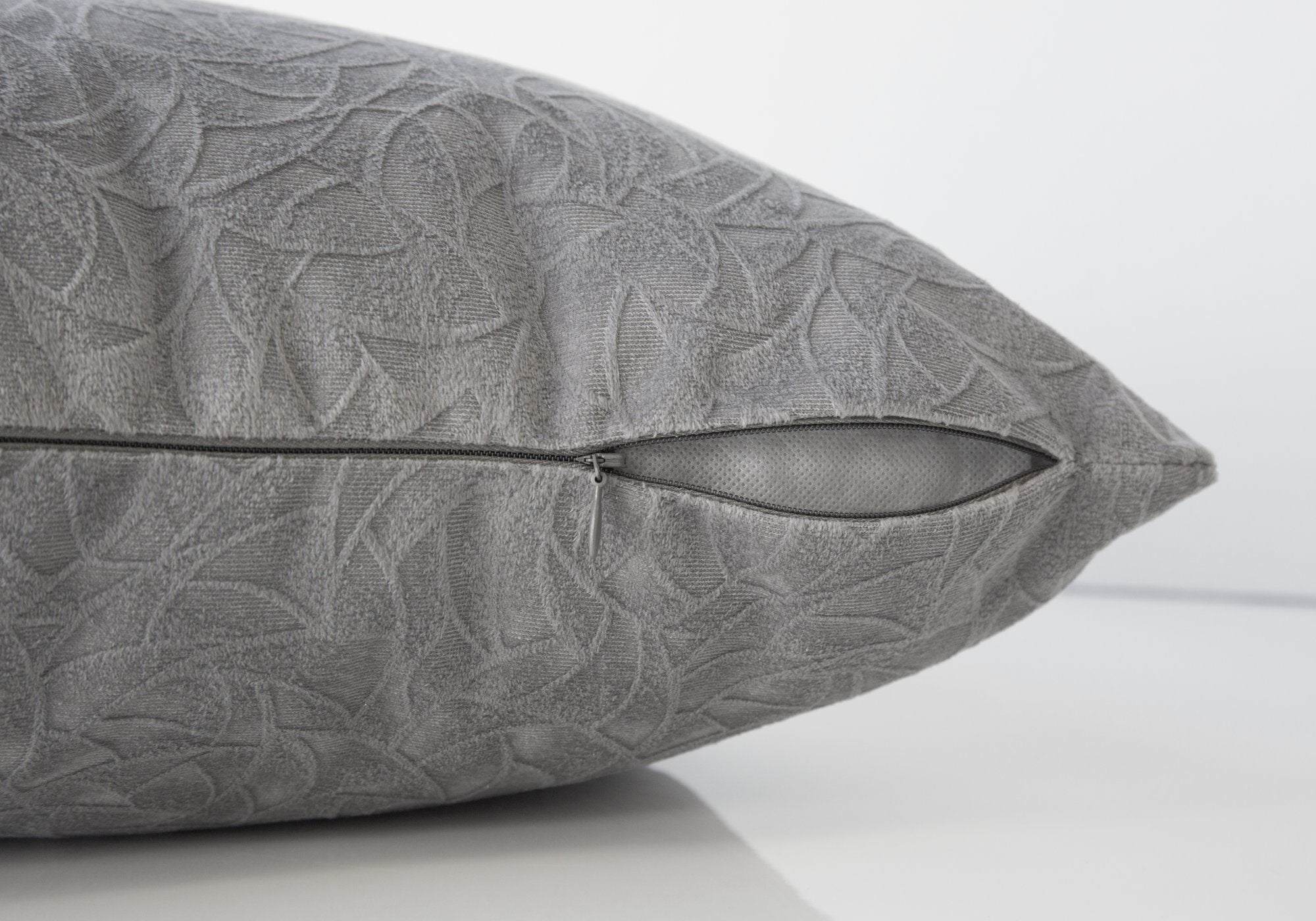 Add a touch of glam to your décor with this square accent pillow in a rich floral velvet finish. The elegant light grey color on both sides adds lushness to a favorite chair, sofa, bed, or entryway bench. Made from soft polyester fabric and the convenient side zipper allows for easy removal of the poly fill insert to machine wash the pillow cover. This plush velvet throw pillow is the perfect finishing touch!