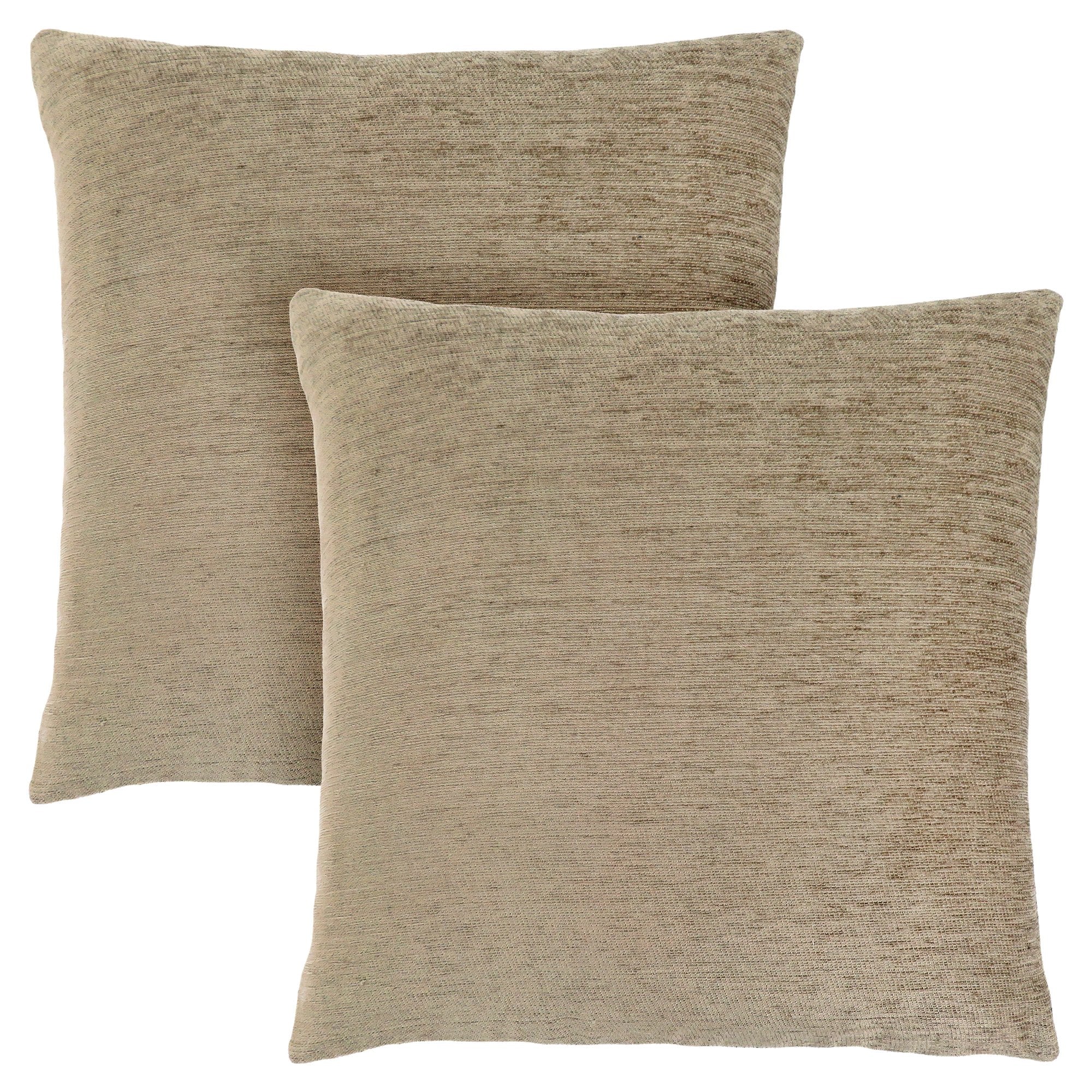 Add a subtle touch of texture to your décor with this set of 2 simple and elegant square accent pillows. The solid tan color on both sides brings a sophisticated element to a chair, sofa, bed, or entryway bench. Made from a smooth and lustrous polyester fabric that is machine washable and the convenient side zipper allows for easy removal of the poly fill inserts. These casual throw pillows will brighten up any room in your home.