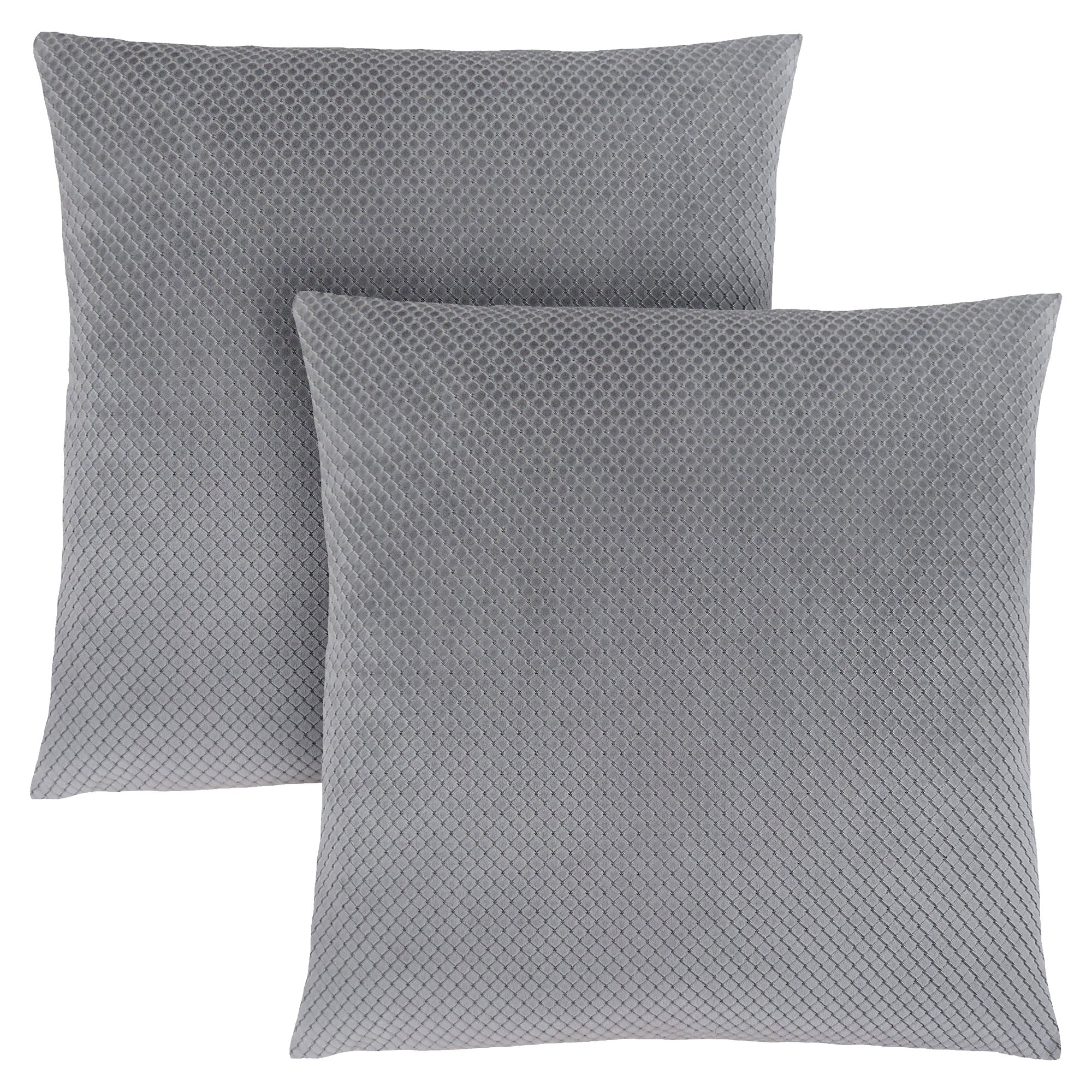 Bring some warmth and comfort to your décor with this set of 2 cozy square accent pillows. The silver diamond velvet finish on both sides adds a contemporary style to a chair, sofa, bed, or entryway bench. Made from velvety soft polyester fabric that is machine washable and the convenient side zipper allows for easy removal of the poly fill inserts. These textured throw pillows will add dimension to any accent furniture in your home.